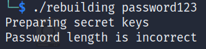 Looking at the output, we see that the program points out that the Password length is incorrect. So the first thing we are going to do is find the password length. Let’s open the executable file rebuilding in Ghidra.