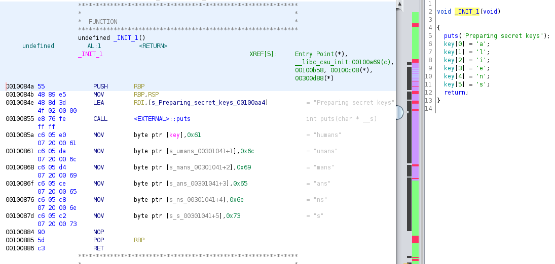 After analyzing more in-depth the program in Ghidra we find a very interesting function called _INIT_1.