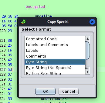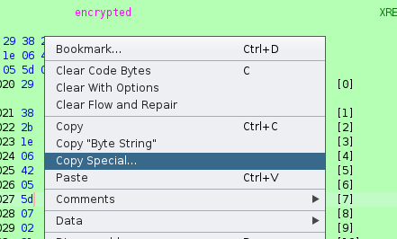 To quickly extract the hexadecimal data to build the encrypted array, select all the data of the picture above, right click and select Copy Special....