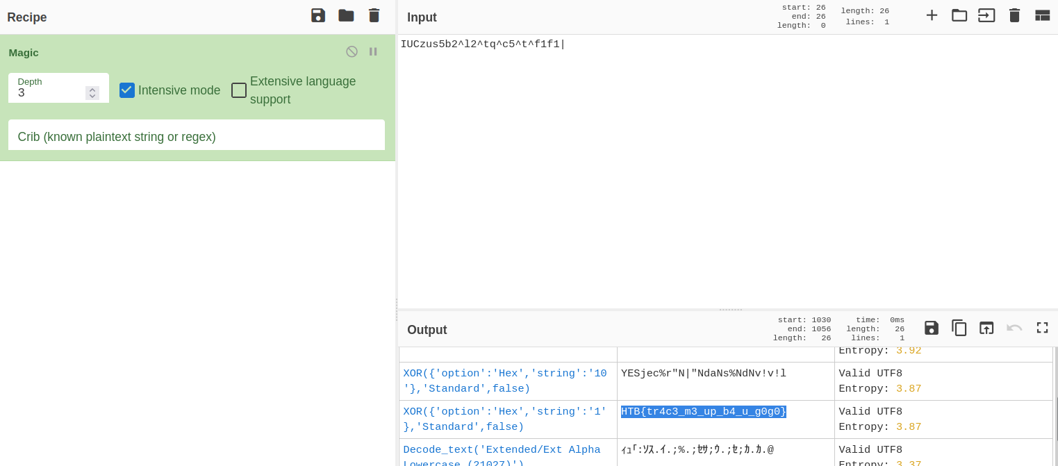 Let’s go to CyberChef and try to decode the string IUCzus5b2^l2^tq^c5^t^f1f1|.