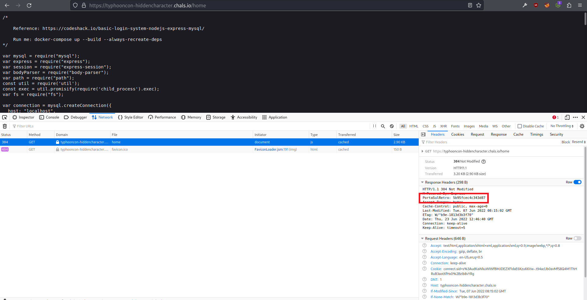 we can see that the variable portasulretro is in the header of the response we get when we access the /home endpoint after logging in.